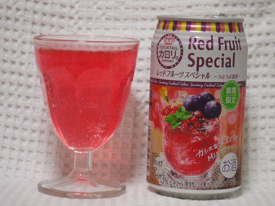 こちらは缶のデザインは赤というか、かなり濃いピンクを主とした、イラスト入りの缶です。 中身も缶と同じく、少しピンク寄りの鮮やかな赤です。 泡ははっきりしており、しゅわしゅわと心地よい感じの泡で、甘味は結構しっかりめ。